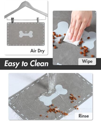 • No water marks will be left when food and water dropped on this dog feeding mat