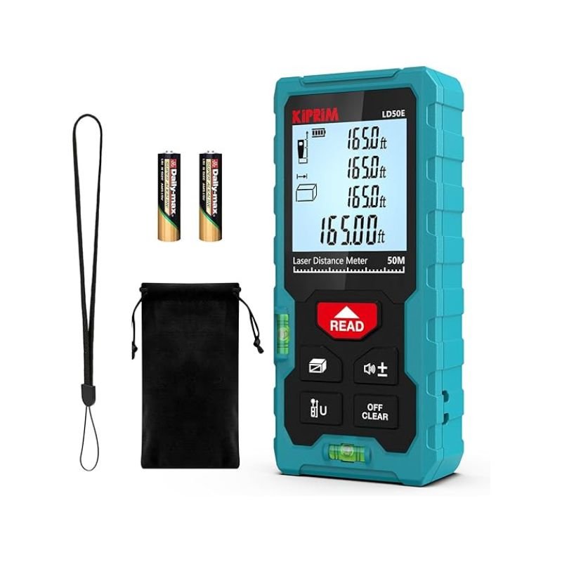 Using advanced laser technology and high-definition optical lens to ensure accurate measurement. The accuracy is up to ±1/16 inches, and the measuring distance is up to 196ft/50m; and it can be switched between feet/inches/meters. Unique 2 bubble levels and automatic calibration ensure the meter is balanced for accurate measurements in any situation. Laser class: class II, power output <1mv. Clear and easy-to-read display, even in low light conditions. Just press a button to start measuring. The lightweight and easy-to-carry design is very suitable for professionals and DIY enthusiasts. Suitable for construction, interior design, real estate and other fields. Area, distance, length, volume, continuous measurement, Pythagorean method – three points; addition and subtraction; low battery indicator; 99 sets of data memory; manual deletion of data; automatic shutdown after 150 seconds of no operation , save power.