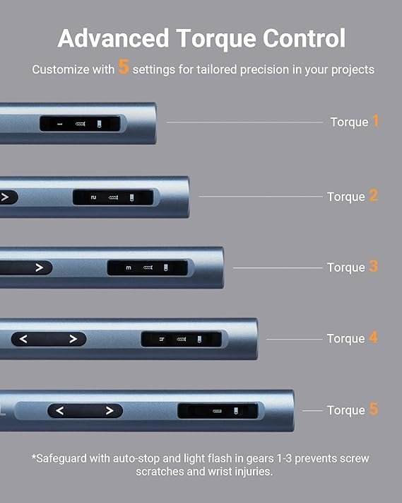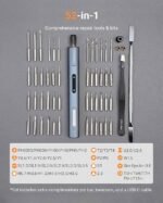Doubled RPM, Higher Control: 400 RPM motor with a unique switch between manual and electric modes. The mini electric screwdriver is perfect for intricate work on laptops, phones, watches, drones, and more. When extra torque is needed for those delicate electronics, we’ve got you covered. Advanced Torque Precision: Gain superior control with 5 adjustable torque settings. 0.1 to 0.3 N·m in electric mode and up to 3 N·m in manual. XCOOL screwdriver and drill’s safeguard system in the initial three settings prevents screw slippage, promising precision and efficiency in your intricate electronic projects. Durable Complete Toolkit: XCOOL mini electric precision screwdriver set includes 48 S2 steel bits – 39 for screws and 9 for drilling, all featuring a hardness of 60HRC. The screwdriver set electric now comes with a robust all-metal gearbox for increased durability. Additionally, this small electric screwdriver includes a handy pry bar and flat tweezers. All these components are neatly organized in a durable, easy-access magnetic case with a pop-up feature.
